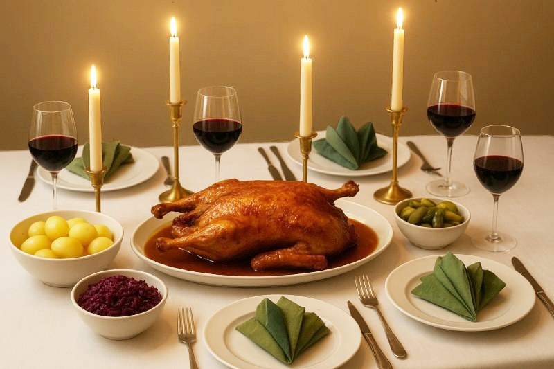 Så mens november mørket banker på ruderne, tænder vi lysene, dækker langbordene op, og sørger for, at stemningen er lige så lun, som ovnen anden er stegt i.